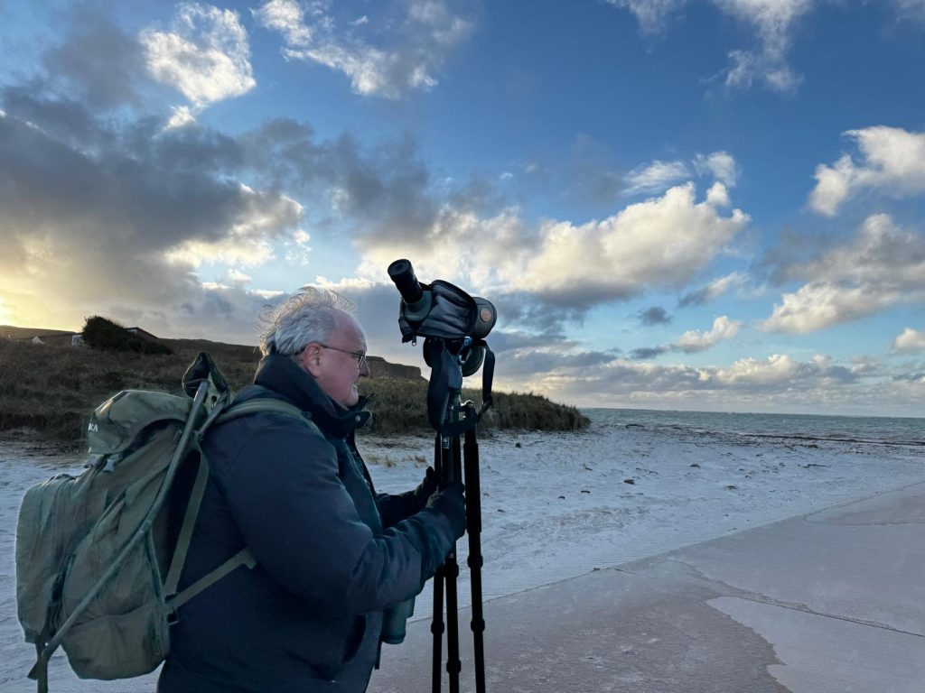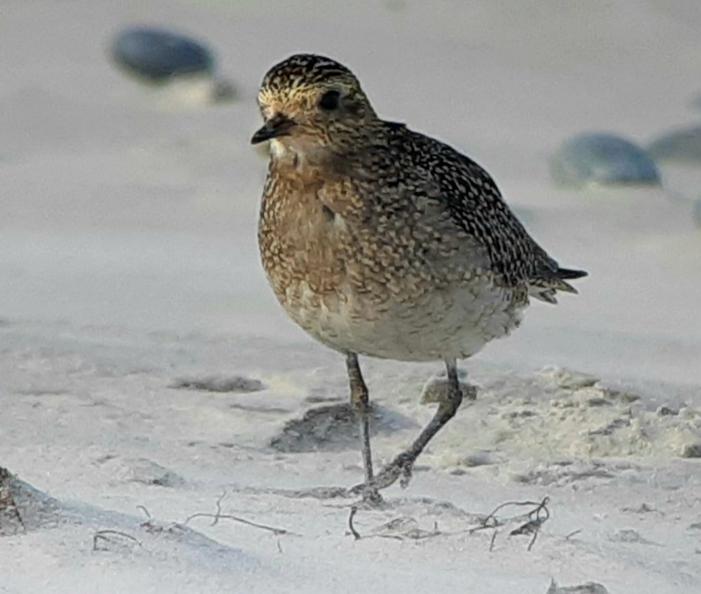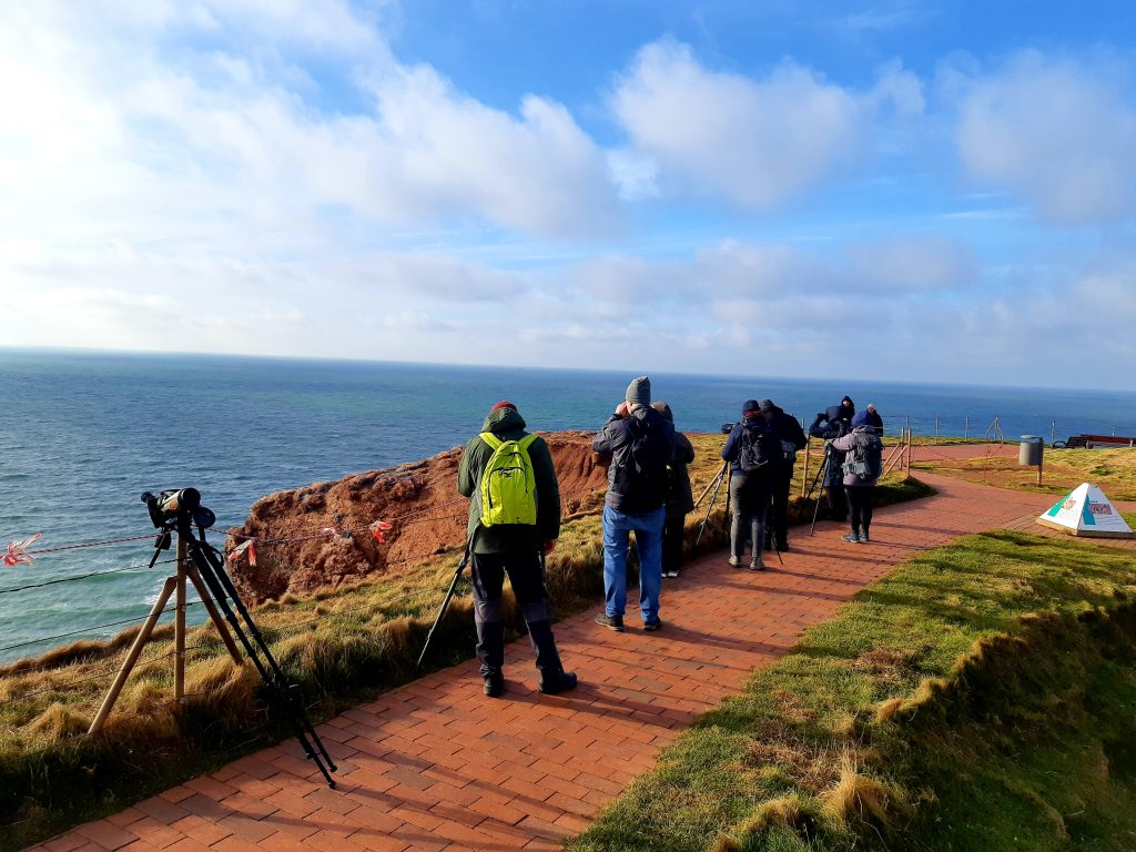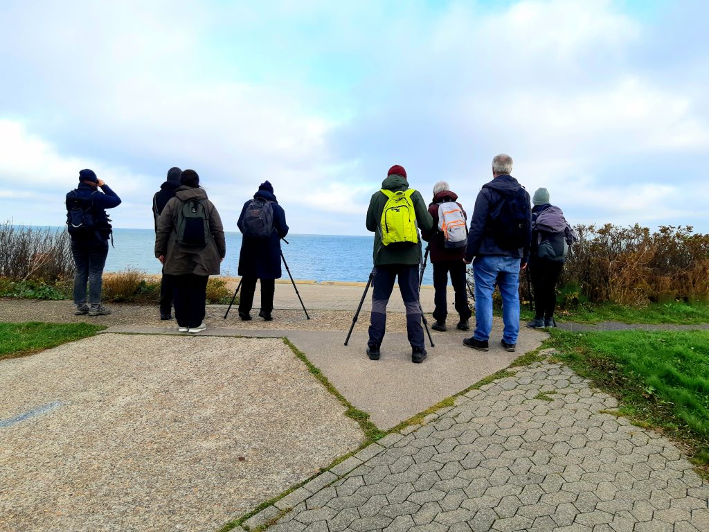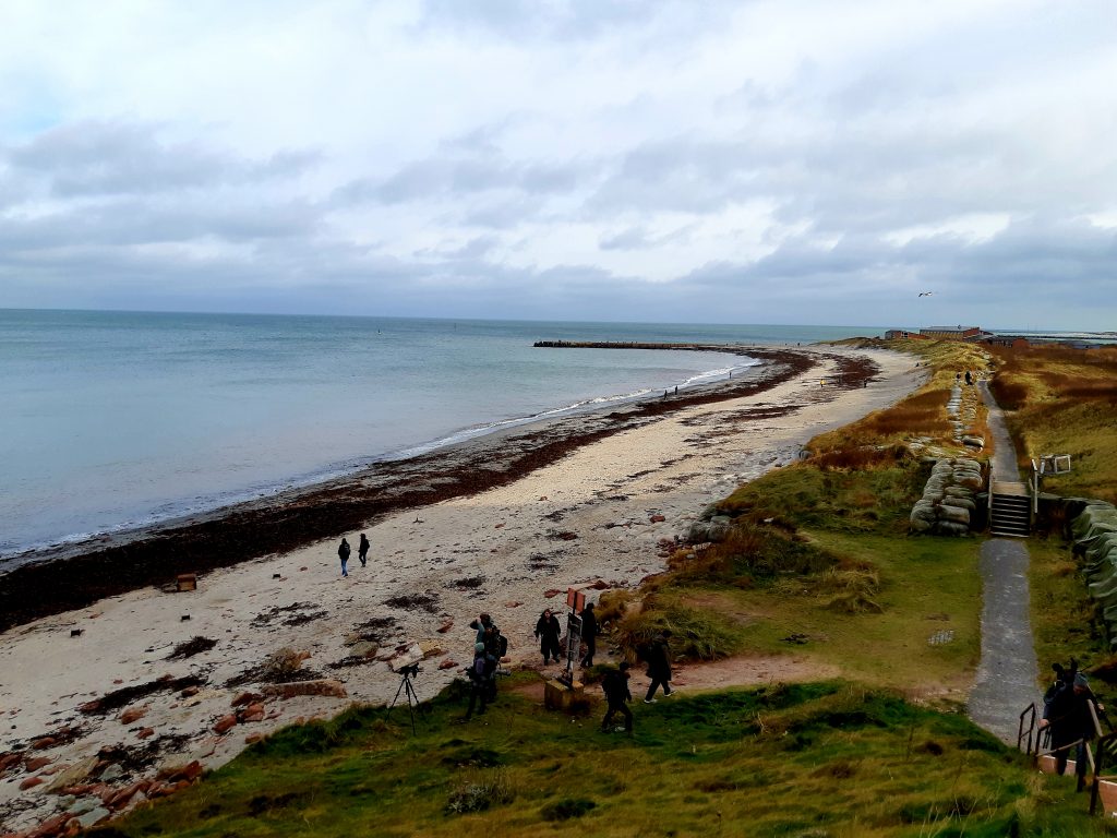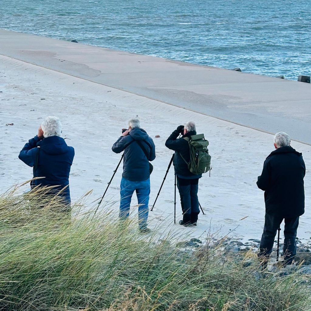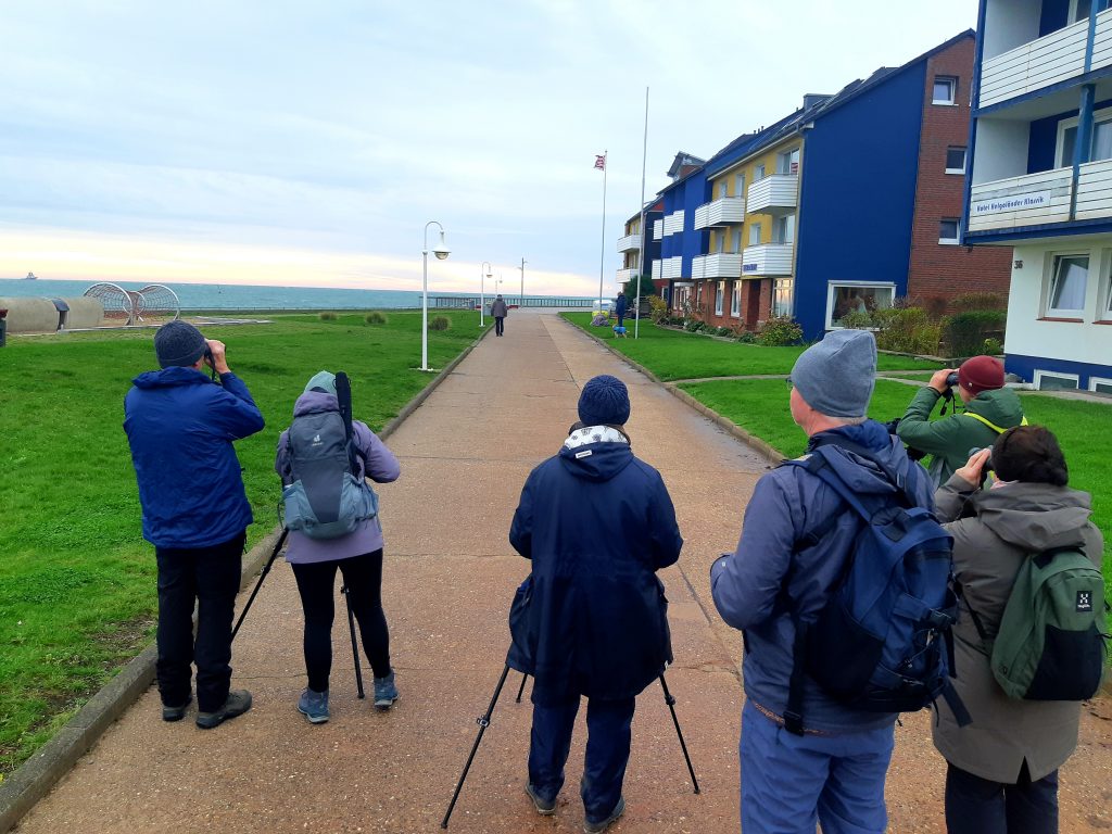 …wieder konnten wir eine Gryllteiste beobachte und die beiden Trauerenten im Hafenbecken waren auch wieder da. Auf dem Oberland wehte der Wind nicht so stark wie erwartet. Trotzdem fanden wir die erhoffte Spornammer nicht. Dafür konnten Teile der Gruppe am Ende einen Gelbbrauenlaubsänger sehen. Ein super Abschluss!