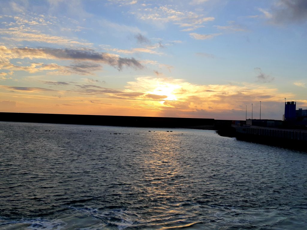 Auf dem Schiff konnten wir noch einige 13möwen und eine Zwergmöwe sehen, wenige Trauerenten und einen Sterntaucher. Als es dunkel war gab es die traditionelle Currywurst ,,Lange Anna“.
