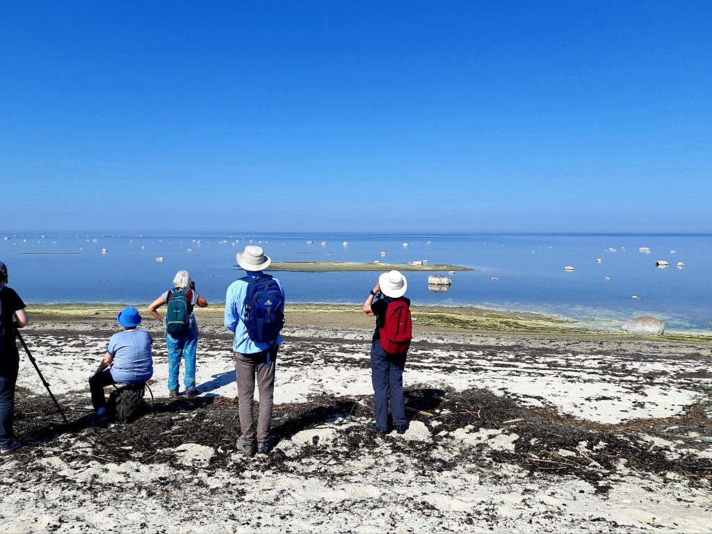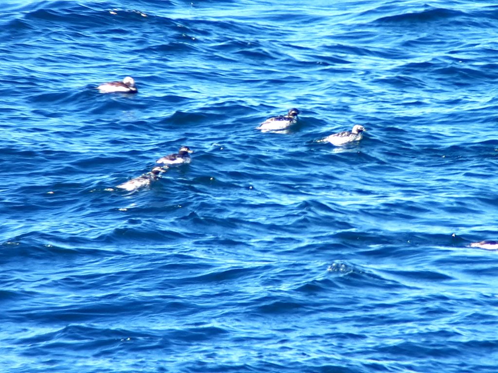 Trotz intensiver Sonne haben wir am Nachmittag noch etwas ,,Seawatching“ gemacht. Mittel-, und Gänsesäger konnten gut verglichen werden. Drei Prachttaucher wurden entdeckt, in verschiedenen Kleidern.