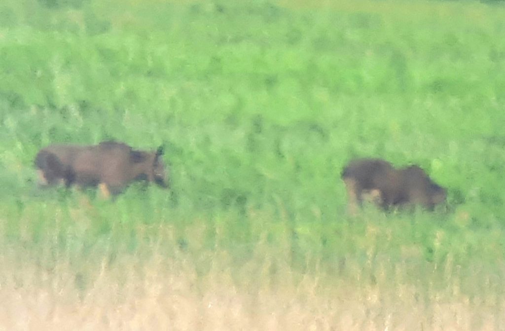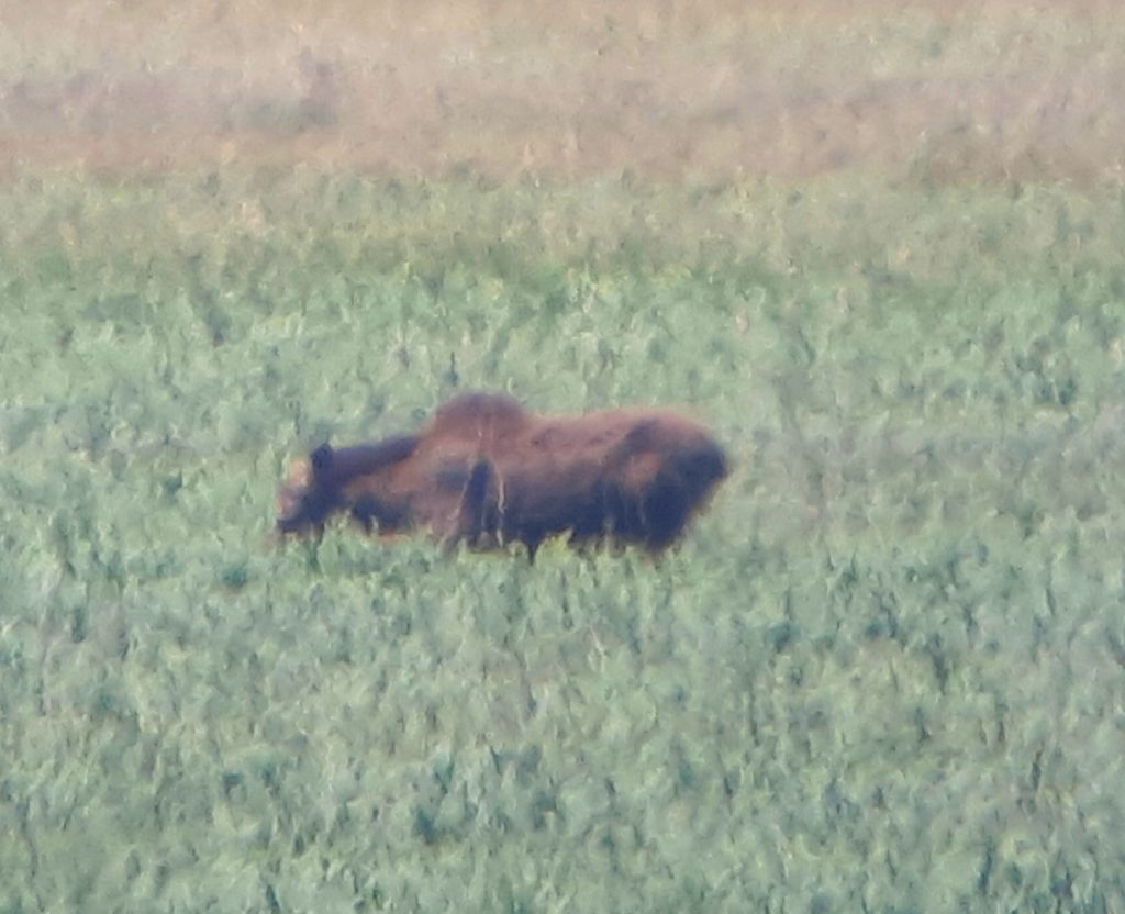 Die etwas längere Anfahrt lohnt sich hier immer. Wieder konnten wir Elche entdecken und mit dem Spektiv bestens beobachten. Ein kleines Jungtier war auch kurz zu sehen. Die Fotos sind leider wieder verflimmert.