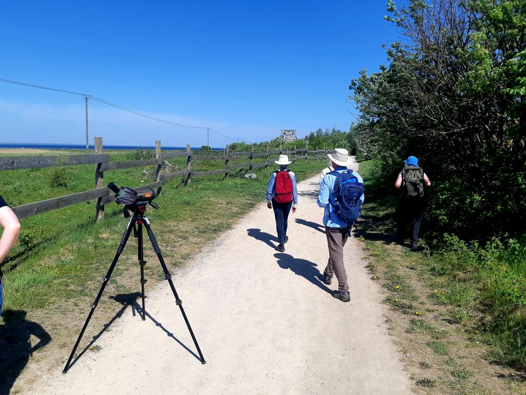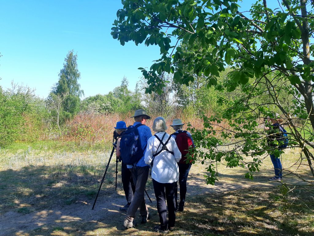 Die komplette Gruppe ist heute morgen um 6:00 Uhr zur Frühexkursion angetreten. Grauschnäpper, Gelbspötter und Trauerschnäpper konnten wir sehen. Klappergrasmücke, Heidelerche und Karmingimpel sangen.