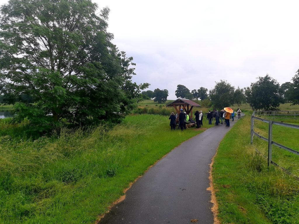 Endlich konnten wir dann doch noch raus. Ein schöner Gang an einem interessanten Feuchtgebiet. Sumpf- Drossel- und Teichrohrsänger, Flußseeschwalben, Fischadler, diverse Enten und vieles mehr konnte beobachtet werden. Leider sind wir nicht ganz trocken geblieben.
