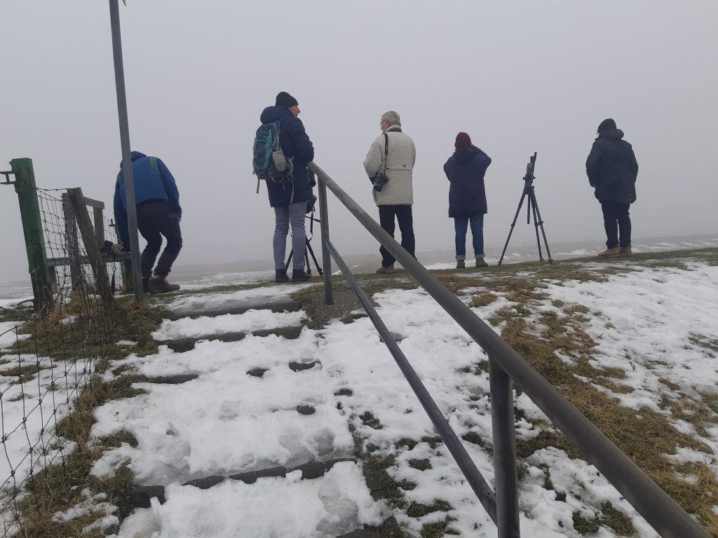 Bei Temperaturen knapp über dem Gefrierpunkt hatten wir heute Morgen ca. 100 Meter Sicht. Trotzdem haben wir intensiv nach Gänsen und Schwänen gesucht.