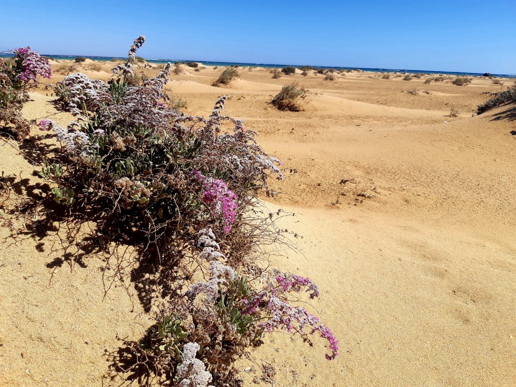 Wüstenläuferlerche entdeckt Viele Spuren im SandWenig Blüten in der Wüste Mittagspause mit Kuhreiher