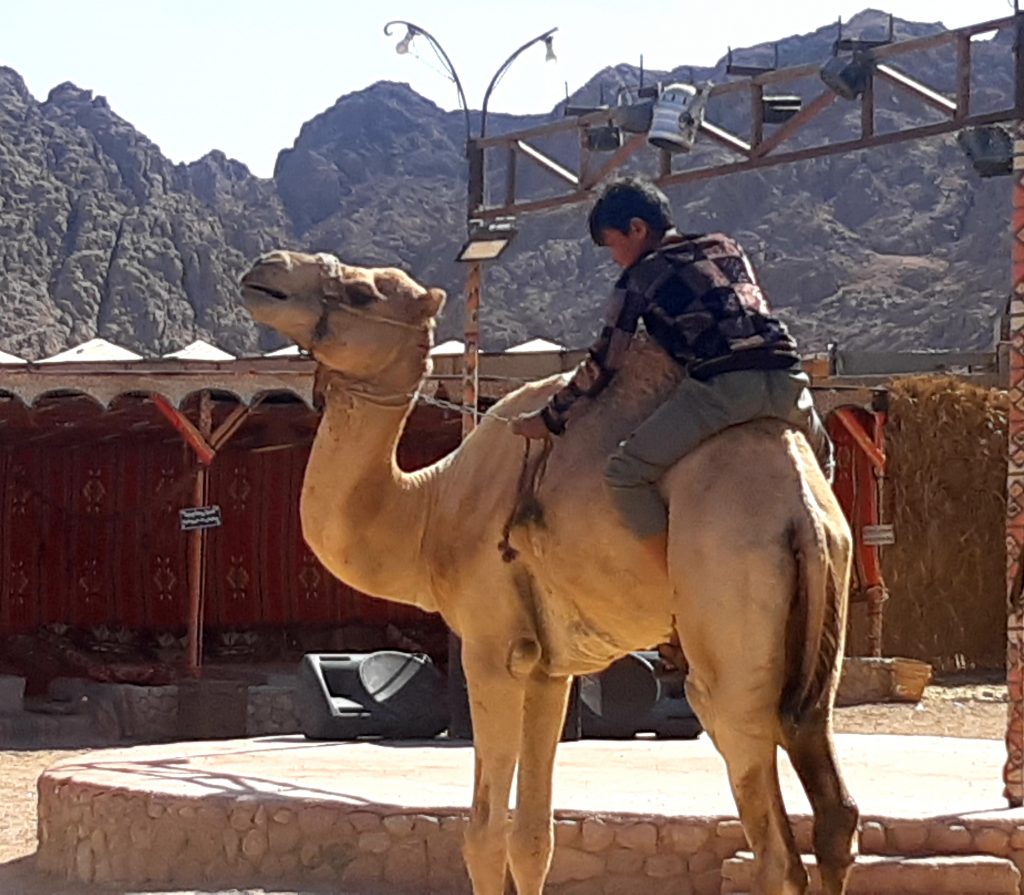 Mahmouds Sohn zeigte uns sein Kamel ,,Maradona “ und einen Schwarzmilan den er aufgepäppelt hat.